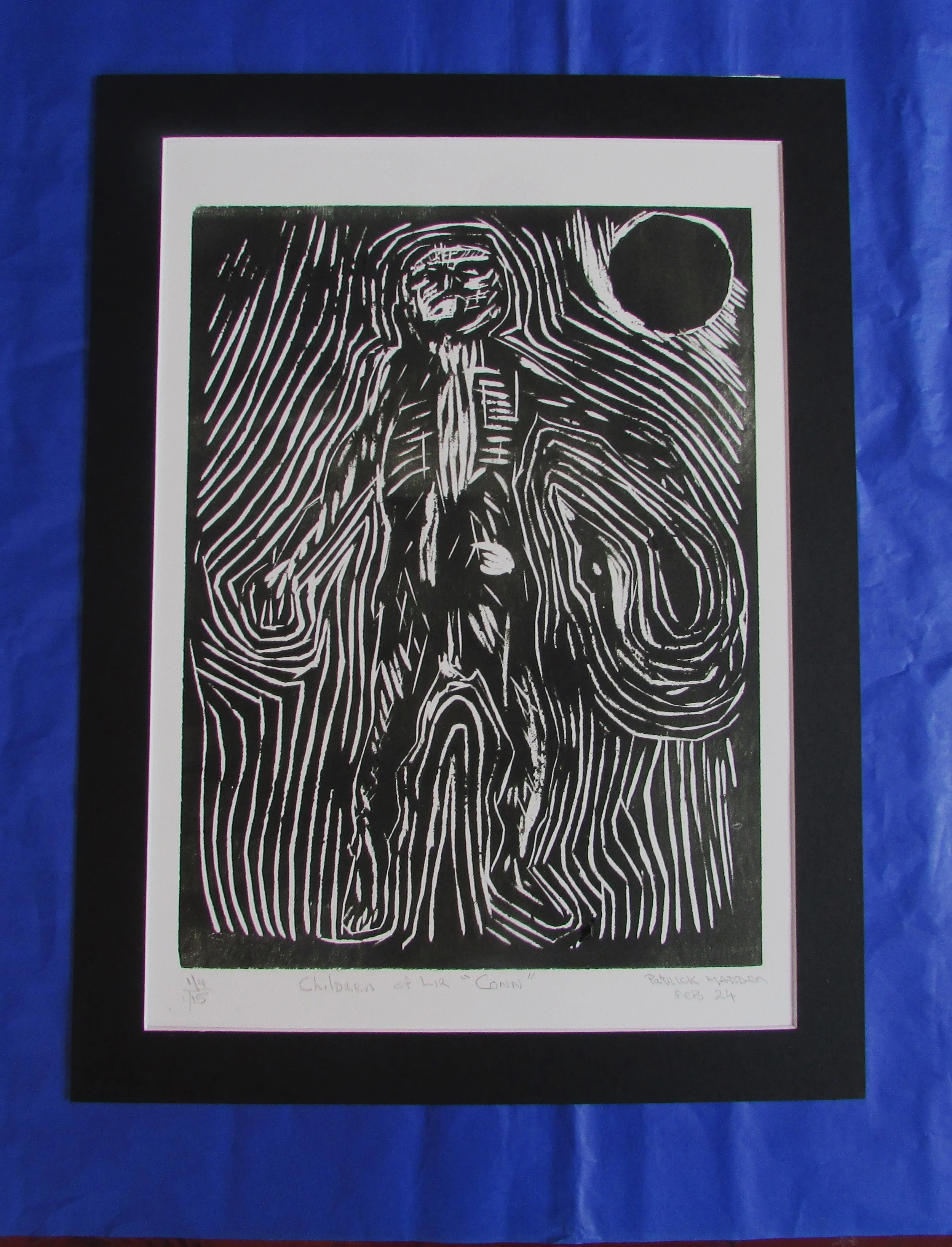 Here is a selection of work that I have editioned in small numbers. these are woodcuts based on the children of lir from Celtic Mythology, I have plans to develop this body of work further this year, with new methods of printing (woodcut, lino , etchings) as well as some new images.